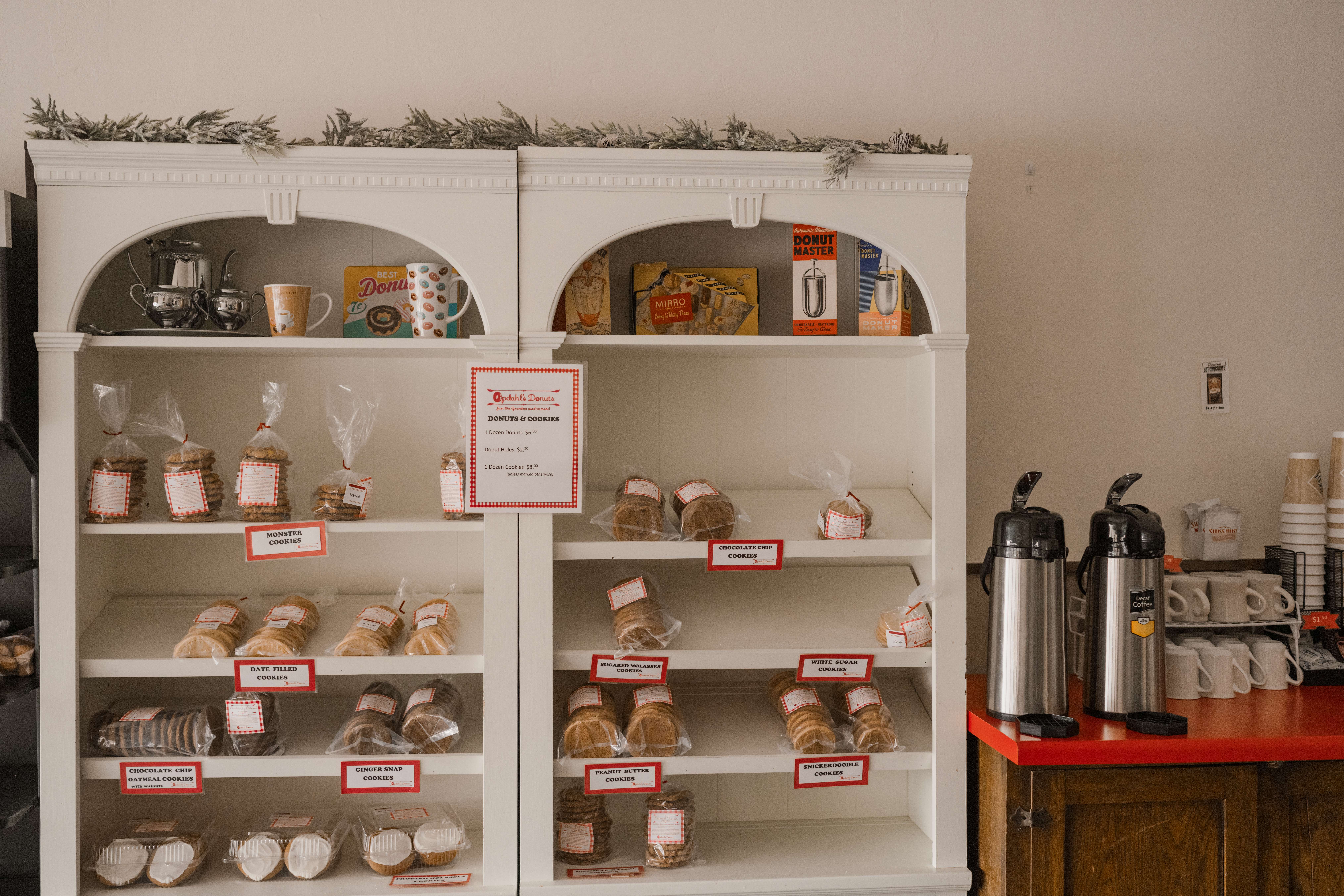 In 2009, she started to sell her donuts at the Mentor Farmers Market and her customer base continued to grow. An opportunity was presented to Jane about opening a storefront for her donuts in conjunction with a health food store. In May of 2011, the Opdahl's Donuts storefront opened. At the beginning, the bakery sold only donuts. In the late fall of 2011, they began to make four kinds of cookies. Over time, Opdahl's Donuts has added additional cookies to their lineup. In October of 2011, Becca Opdahl joined Opdahl's Donuts as a part-time employee. In the fall of 2014, the health food store moved into their own storefront, so Opdahl's Donuts was able to occupy the entire building. At that point, Opdahl's Donuts slowly started making muffins, scones, caramel rolls and other baked goods, which later evolved into their daily special schedule.