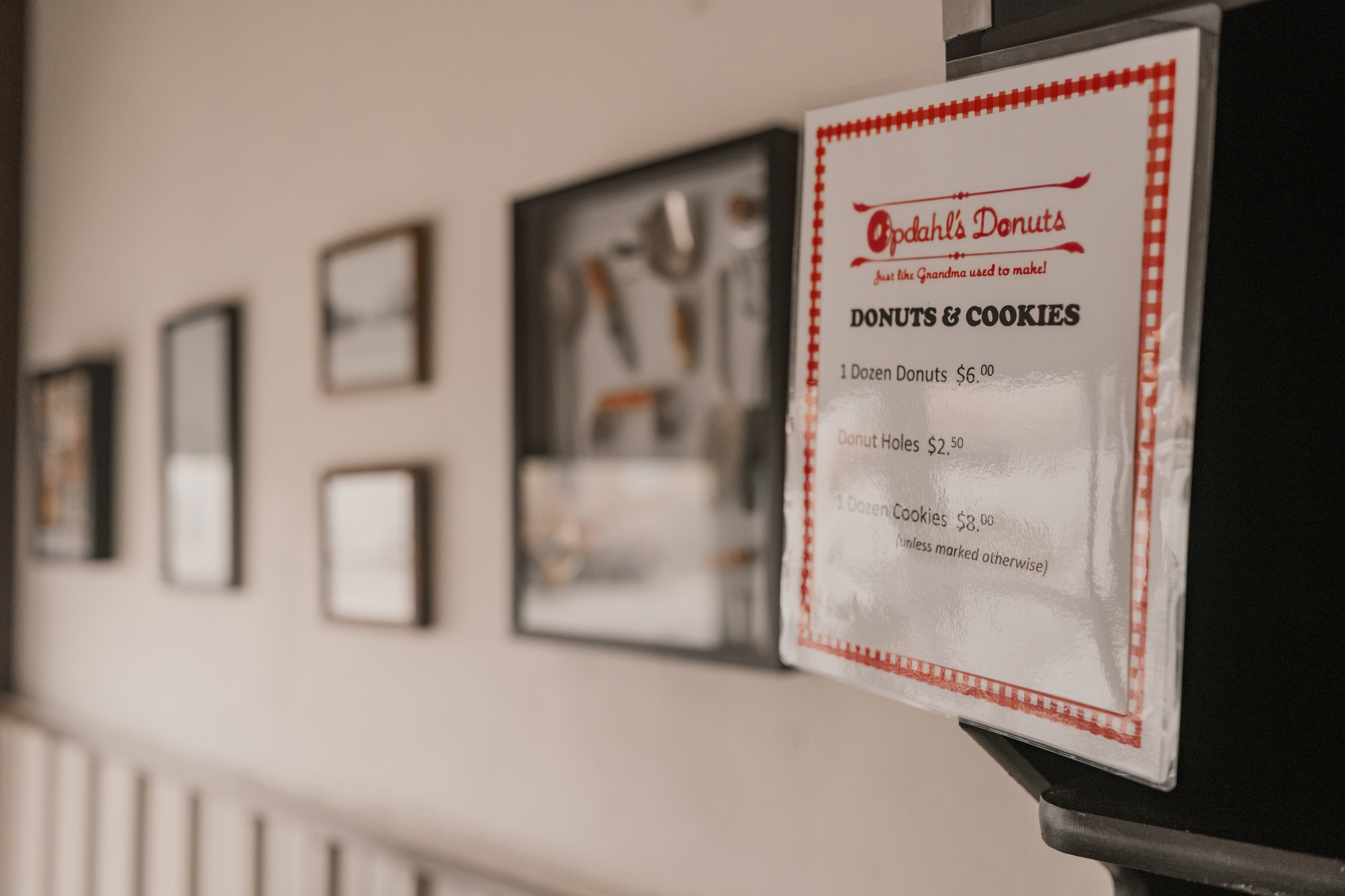 Opdahl's Donuts is a cute, little, one-of-a-kind, small town bakery in Fertile, Minnesota where we've been making made-from-scratch goodies since May 2011. We do not make the usual filled, raised, or glazed donuts that the "run-of-the-mill" bakeries have. Grandma didn't make those things! She made old fashioned buttermilk cake donuts, cookies, pies, muffins, and caramel rolls, amongst other things. Started in 2011 by Jane Opdahl and sold over to her daughter-in-law, Becca Opdahl, our family-owned bakery strives to bring happiness and nostalgia to our customers. Our name and reputation has spread far and wide over the years. We have customers from all over the region stopping by to enjoy our products. They share with their families and also with their friends. They can say with certainty that the donuts are "just like Grandma used to make"!